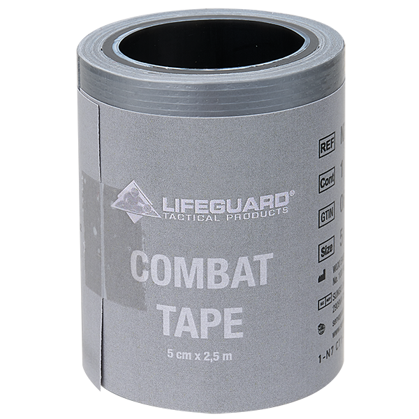 A Combat Tape é uma fita adesiva de alta aderência, versátil, que oferece aos primeiros socorros segurança e apoio adicional quando gazes e bandagens elásticas não são suficientes. O rolo é pequeno e manejável, conseguindo assim caber em qualquer IFAK, mas oferece a medida de 5 cm x 2,5 m, o que é suficiente para diversas aplicações.